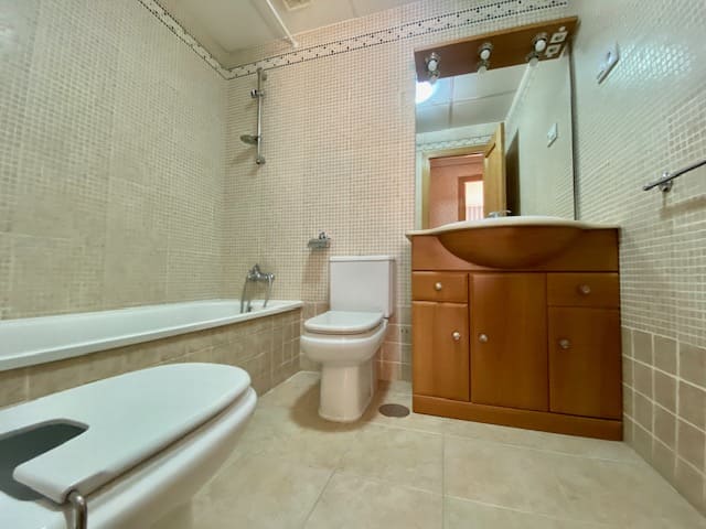 Cuenta con cuatro dormitorios con armarios empotrados y dos baños, uno de ellos en la habitación principal.
