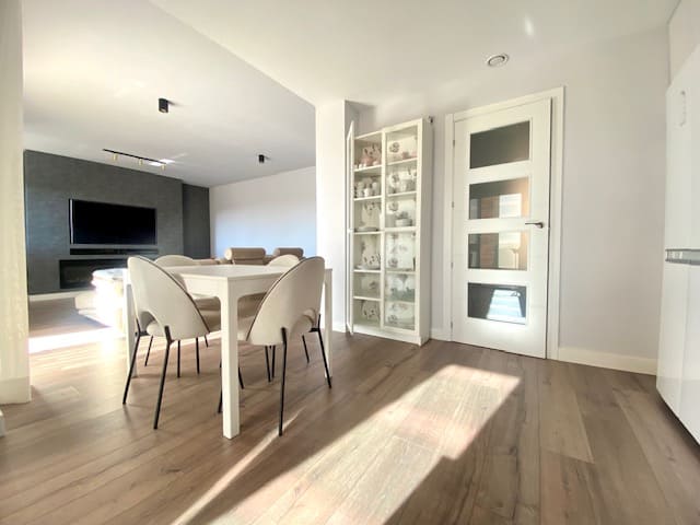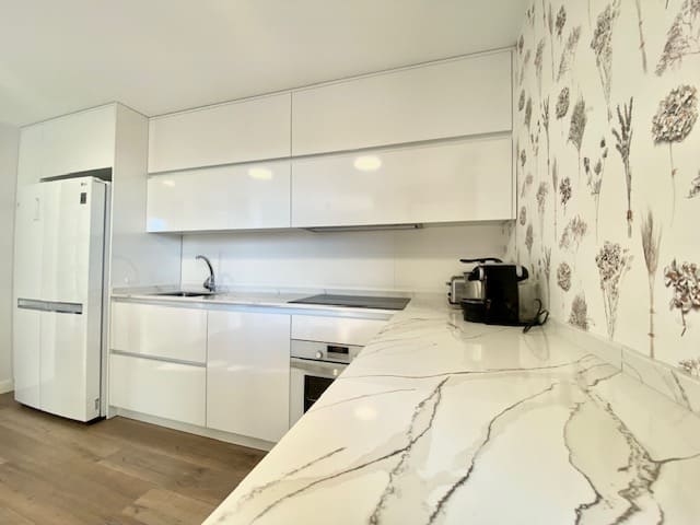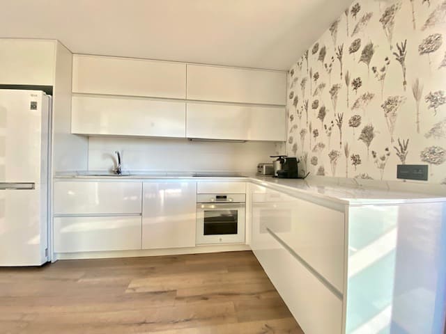Piso exterior con amplio salón y dos terrazas con vistas, cocina totalmente equipada, así como zona de lavado anexa.