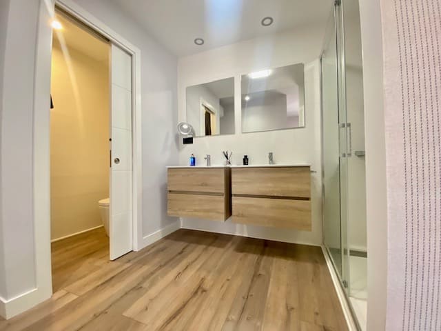 Cuatro dormitorios, dos baños uno en habitación principal con vestidor independiente.